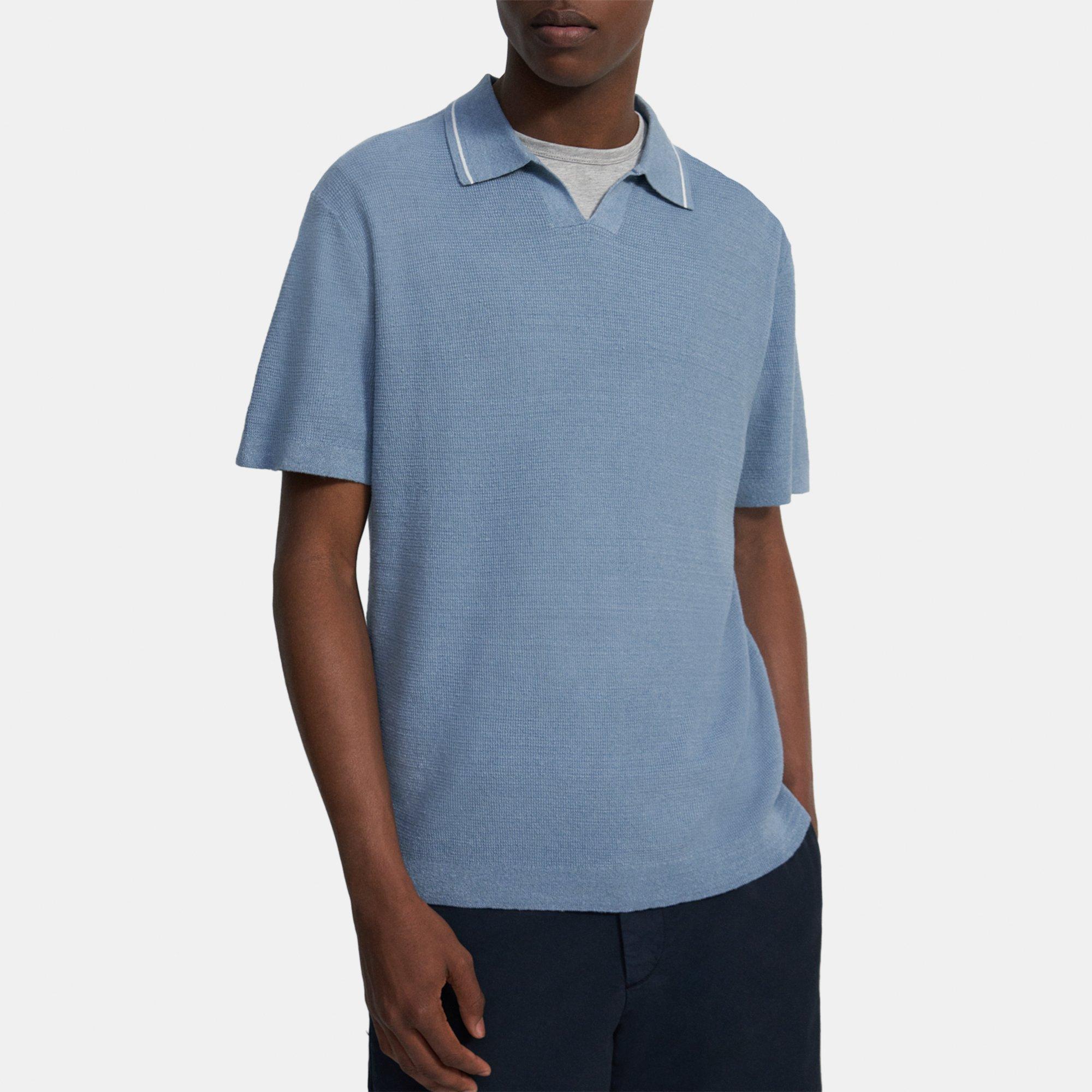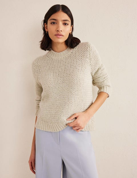 Crochet Stitch Neck Jumper In Cotton Blend Blue